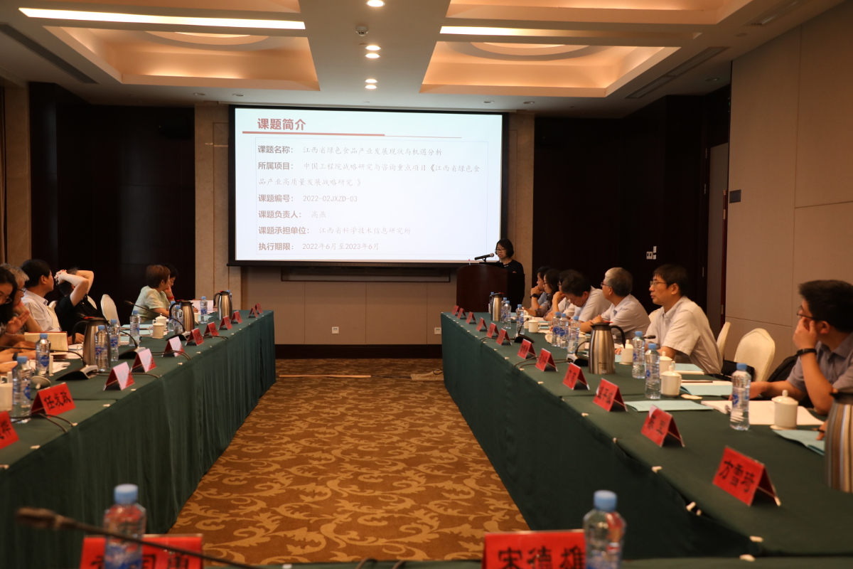 该项目由3个子课题组成,此次会议主要对三个子课题的研究成果进行结题评审。其中,课题一“江西省绿色食品产业发展现状与机遇分析”由我所承担完成。会上,课题一负责人高燕副所长汇报了课题实施情况、主要研究内容以及研究成果。
