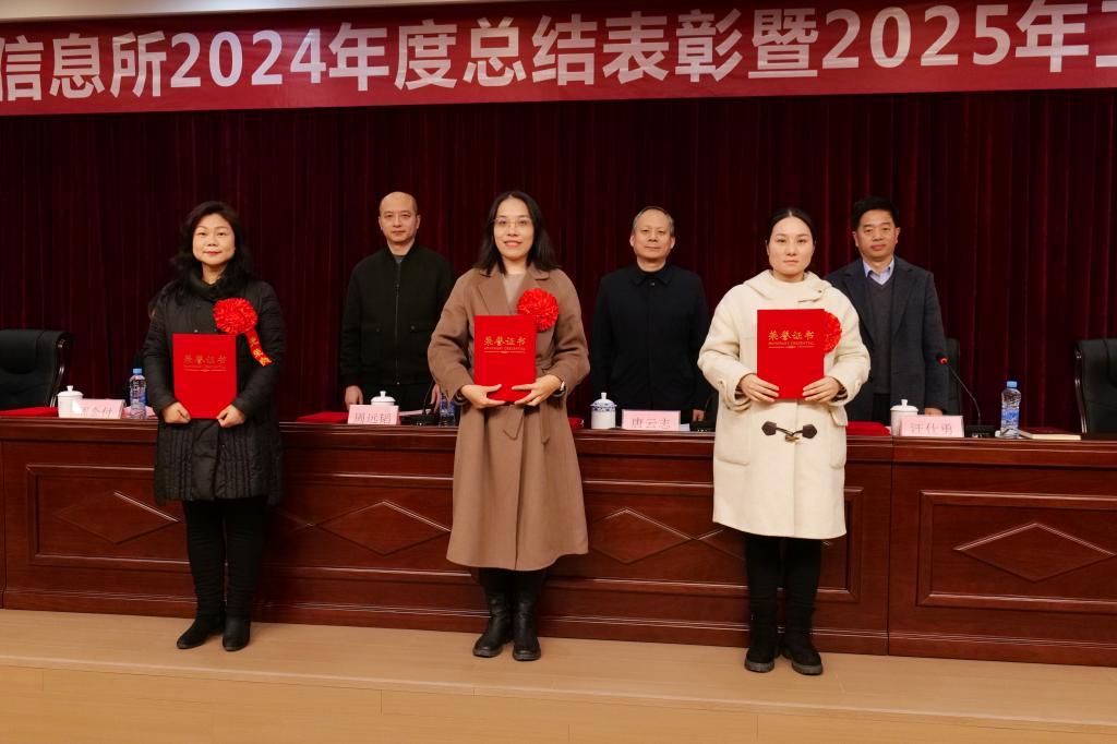 会议宣读了省信息所2024年度优秀科室、优秀个人及单项突出贡献个人名单,出席会议的领导为受表彰集体与个人颁奖并合影留念,优秀科室和优秀个人代表发言。