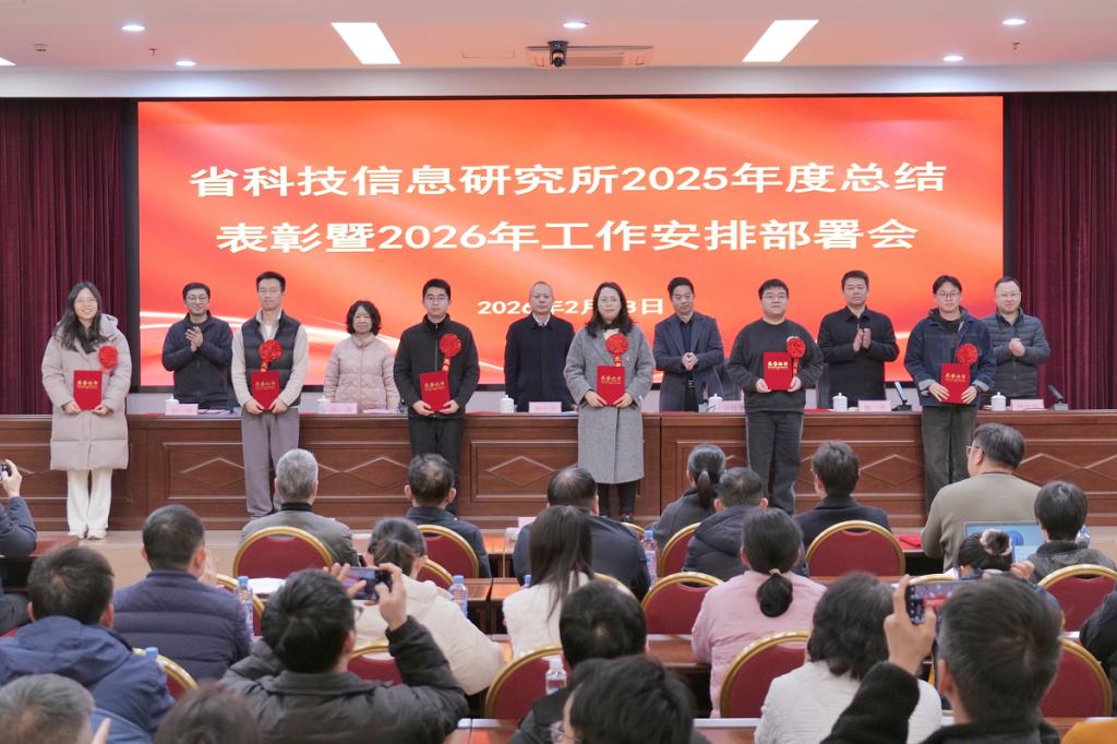 会议宣读了省科技信息研究所2025年度优秀科室、优秀个人及单项突出贡献个人名单,出席会议的领导为受表彰集体与个人颁奖并合影留念,4名优秀科室、优秀个人和单项突出贡献个人代表发言。