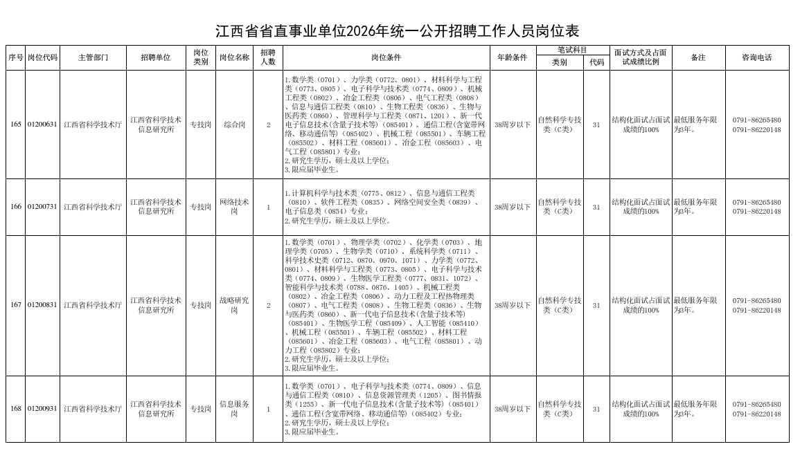 1.江西省省直事业单位2026年统一公开招聘工作人员岗位表