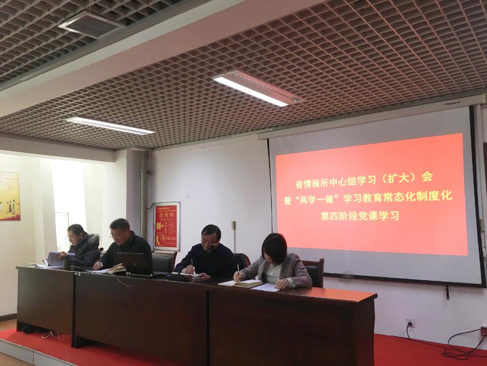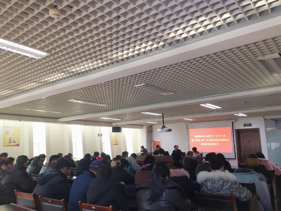 2018年1月10日下午,党员活动日之际,我所党委组织全体党员干部、中级以上干部在三楼会议室召开中心组学习(扩大)会暨“两学一做”学习教育常态化制度化第四专题党课学习会议。会议由所长陈火军主持,党委书记柳俊君、副所长黄虹、高燕,全体党员干部、中层以上干部共计40余人参加了此次学习会议。