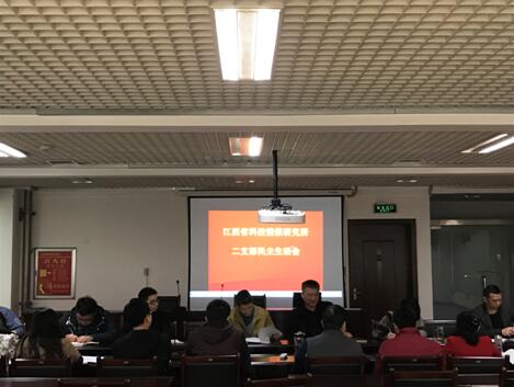 2017年3月9日上午,根据中共江西省直机关工委《关于严格省直机关基层党组织党内政治生活制度的意见》(赣直党发[2017]1号)文件要求,按照省科技厅转发省直工委《关于在“两学一做”学习教育中召开专题组织生活会和开展民主评议党员的通知》文件部署和所党委工作安排,省情报所二支部召开党员组织生活会,就党员批评和自我批评开展讨论交流。支部代理书记万瑞主持会议,党委书记柳俊君、副所长高燕、支部组织委员郑家林、支部宣传委员屈喜琴等共计18名党员干部出席会议。