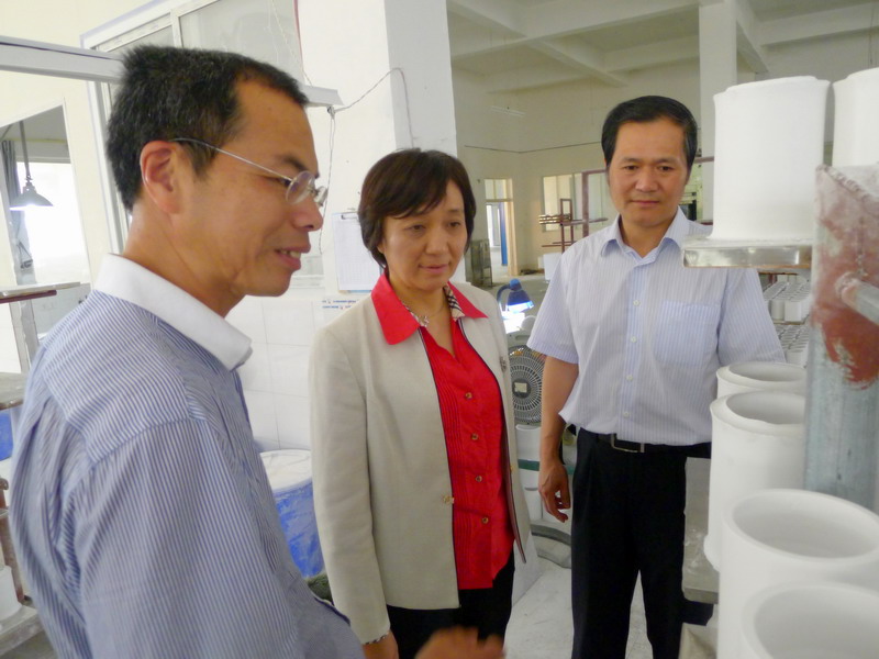 在景德镇陶瓷学院郭书记一行考察国家日用及建筑陶瓷工程技术研究中心和国际陶艺中心,了解平台发展情况、取得的主要科研成果、科研成果转化和产业化现状,与景德镇陶瓷学院副院长左和平就学院建设、科技创新、科技平台、科技成果转化等方面进行了交流,希望景德镇陶瓷学院用好工程技术研究中心这一国家级平台,提升整体科技创新能力和水平,加强科技成果转化和产业化,把学院建成国内外有影响的特色名校,为陶瓷产业的振兴与发展培养更多、更好的人才。