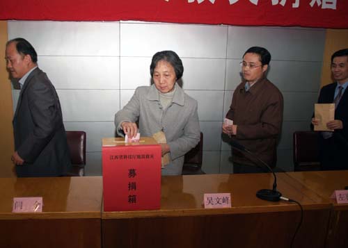 2005年11月30日下午3:00,省科技厅系统举行向九江地震灾区捐款活动。厅党组副书记、副厅长吴文峰向大家通报了省政府防震救灾应急指挥部全体会议精神和九江瑞昌灾区的灾情,号召全厅系统干部职工响应省政府号召,充分发挥社会主义“一方有难、八方支援”的互助精神,以刚刚结束的保持共产党员先进性教育为动力,向九江地震灾区奉献一份爱心,踊跃捐献,帮助灾区人民度过难关。捐款活动由副厅长左喜明主持,副厅长闫金、巡视员周青出席。此次活动共收到捐款15900余元,将全部送往九江地震灾区。