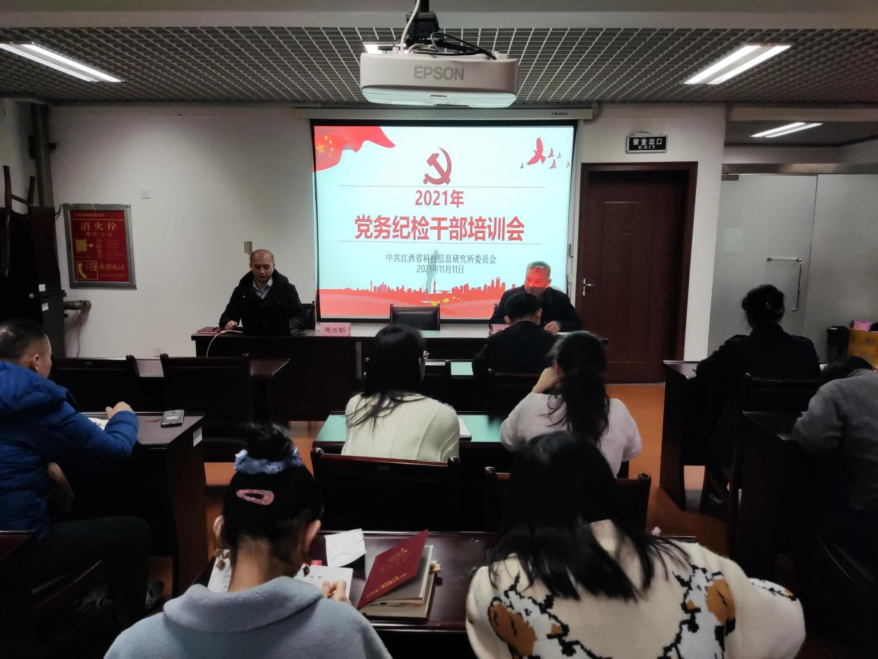 2021年11月11日,为落实新时代党建要求,有效提升全所党务纪检干部的综合素质和履职能力,持续推进党史学习教育走深走实,省科技信息研究所在三楼会议室召开党务纪检干部培训会。会议由所党委书记柳俊君主持,邀请了省科技厅直属机关党委周远韬同志、省纪委省监委驻省科技厅纪检监察组肖志远同志为全所党务、纪检干部授课,所各支部书记、支委、专职纪检员、党务联络员参加培训。