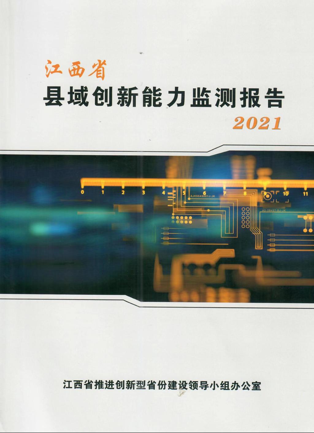 江西省县域创新监测指标体系,包括创新环境、创新投 入、创新成效、经济社会发展和基本情况5个子系统,每一子系统设有若干监测指标,共41项指标,基本囊括了与县域创新能力相关的监测数据。《江西省县域创新能力监测报告2021》主要包括五部分内容:一是全省县域创新能力监测指标,二是全省县域各子系统创新能力监测指标,三是各县(市、区)创新能力监测指标,四是县域创新能力监测指标体系,五是县域创新能力监测指标解释和数据来源。